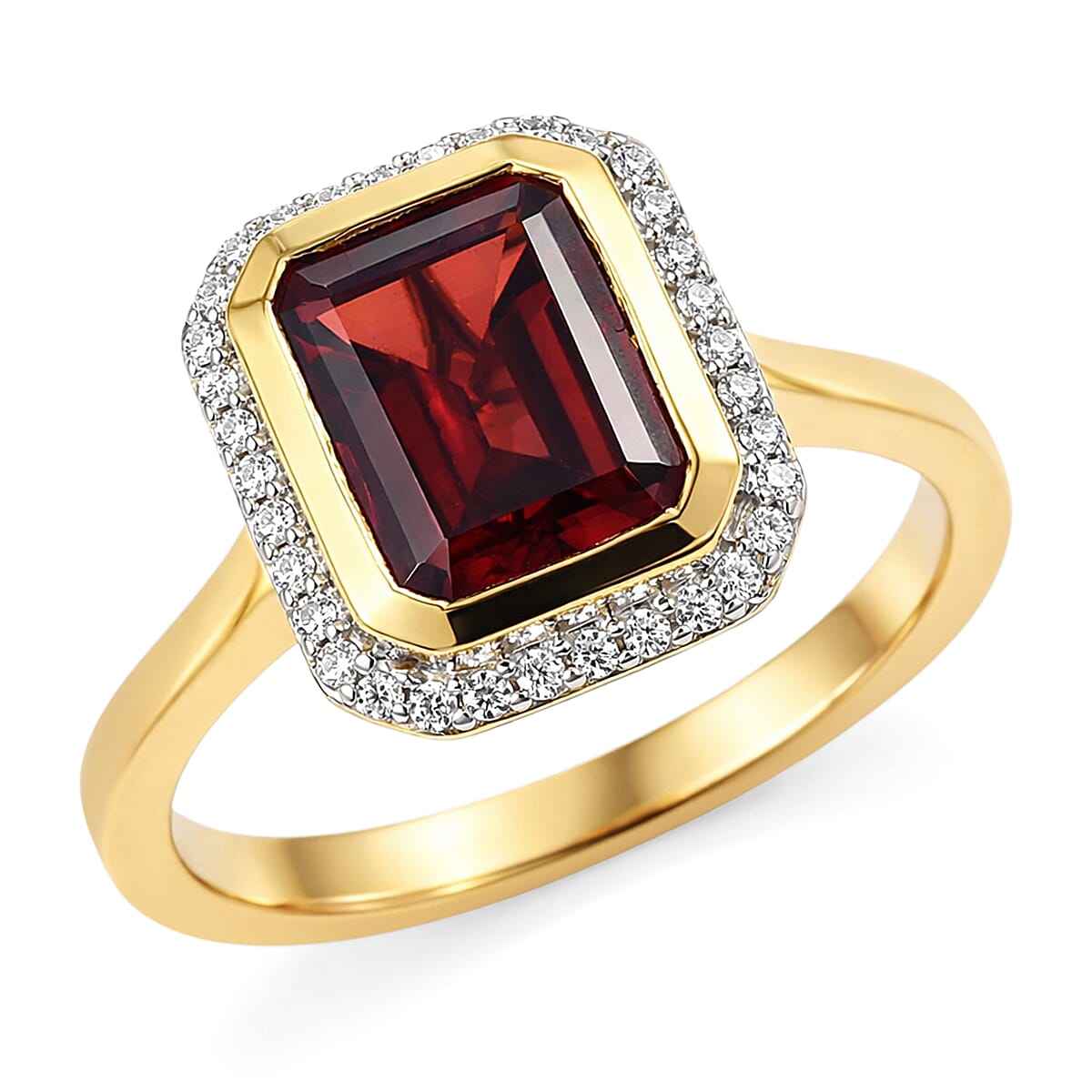 D'Joy Premium Mozambique Garnet, Moissanite Ring in 18K Vermeil YG Over Sterling Silver (Size 6.0) 3.00 ctw