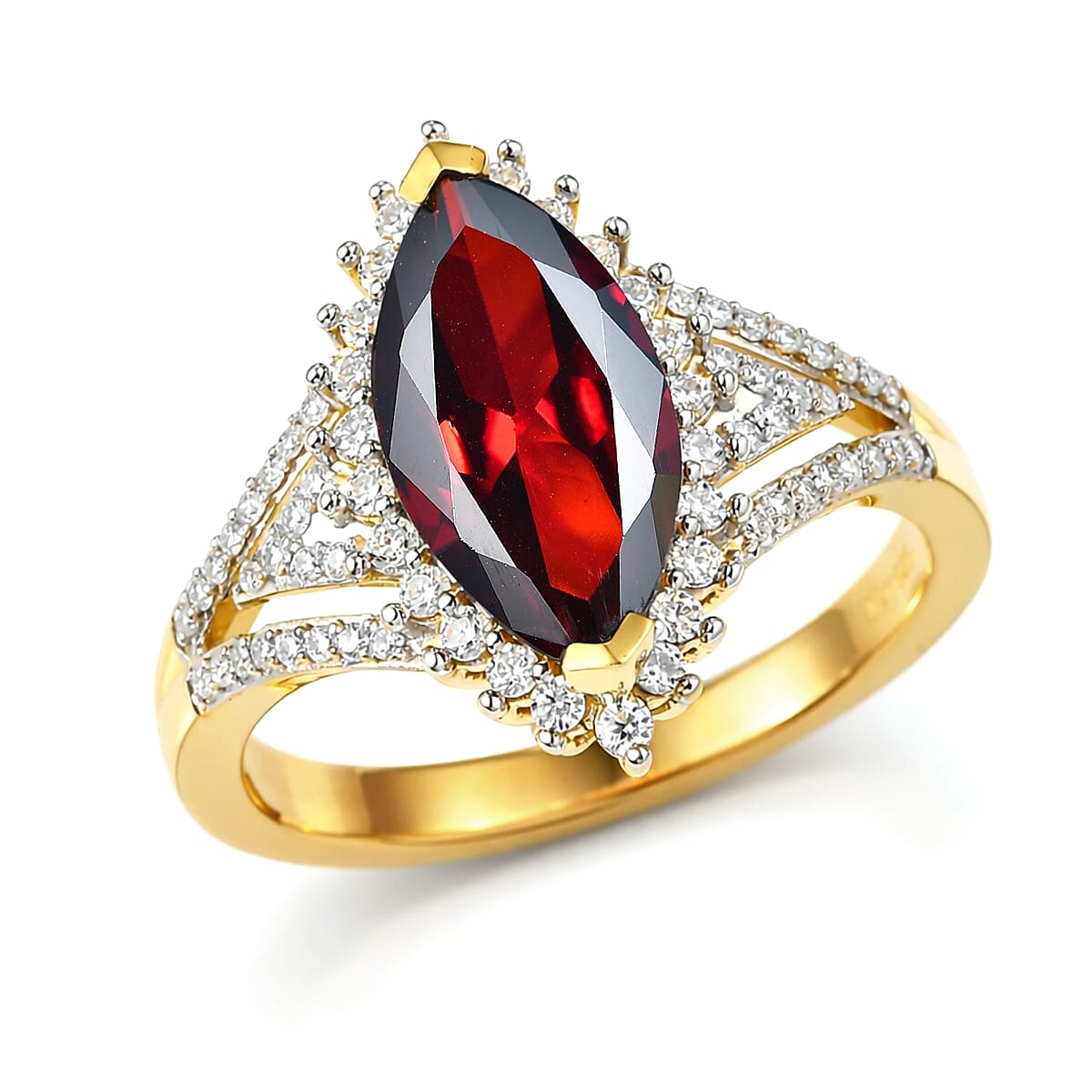 D'Joy Premium Mozambique Garnet, Moissanite Ring in 18K Vermeil YG Over Sterling Silver 3.40 ctw