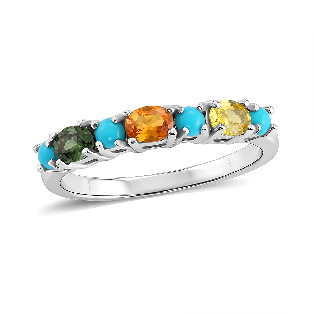 D'Joy Premium Multi Sapphire and Sleeping Beauty Turquoise 1.00 ctw Vivid Skyline Ring in Rhodium Over Sterling Silver (Size 10.0)