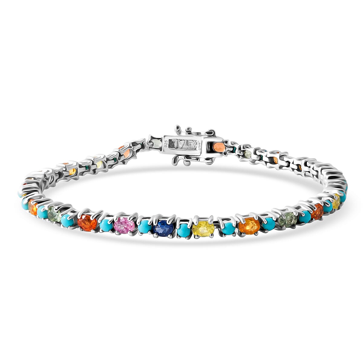 D'Joy Premium Multi Sapphire and Sleeping Beauty Turquoise 7.20 ctw Vivid Skyline Bracelet in Rhodium Over Sterling Silver (7.25 In)