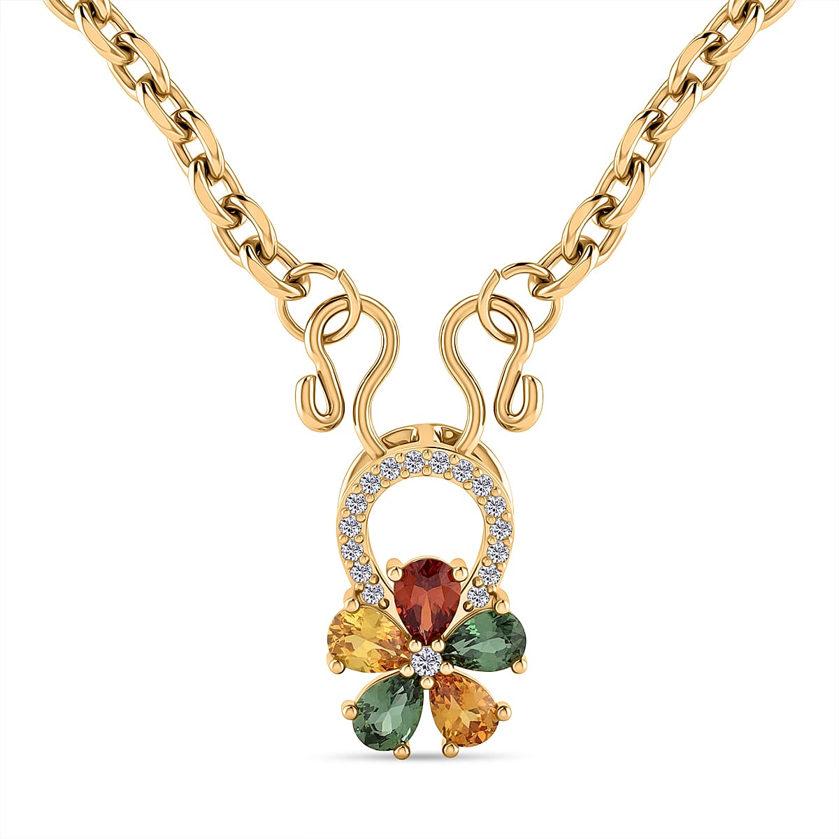 D'Joy Premium Multi Sapphire and White Zircon 1.30 ctw Color Bloom Pendant Necklace in 18K YG Plated Sterling Silver 20 Inches