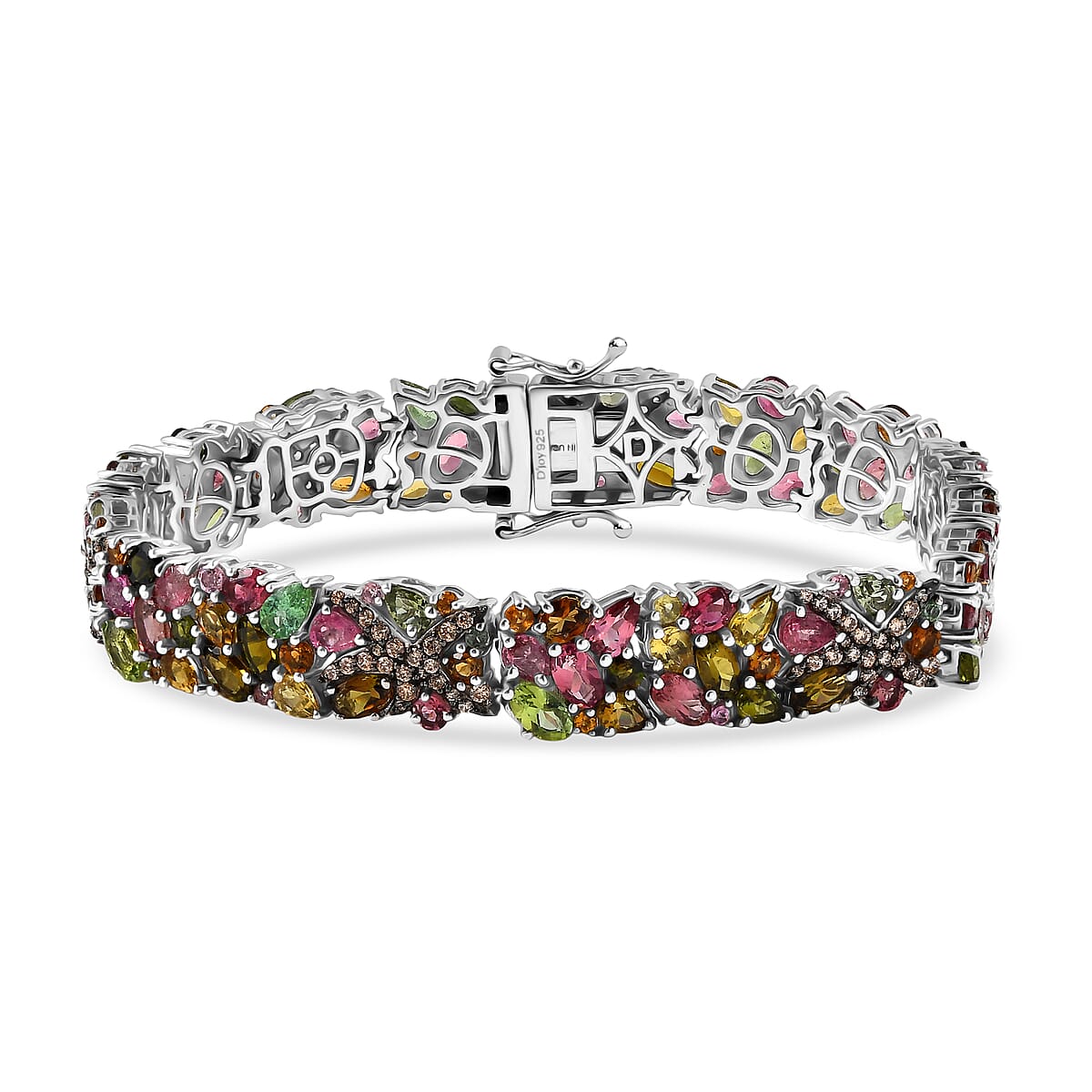 D'Joy Premium Multi-Tourmaline and Champagne Zircon 20.90 ctw Seashell Bracelet in Rhodium Over Sterling Silver (7.25 In)