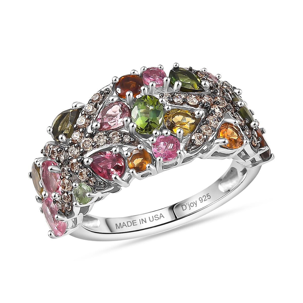 D'Joy Premium Multi-Tourmaline and Champagne Zircon 3.10 ctw Seashell Ring in Rhodium Over Sterling Silver (Size 10.0)