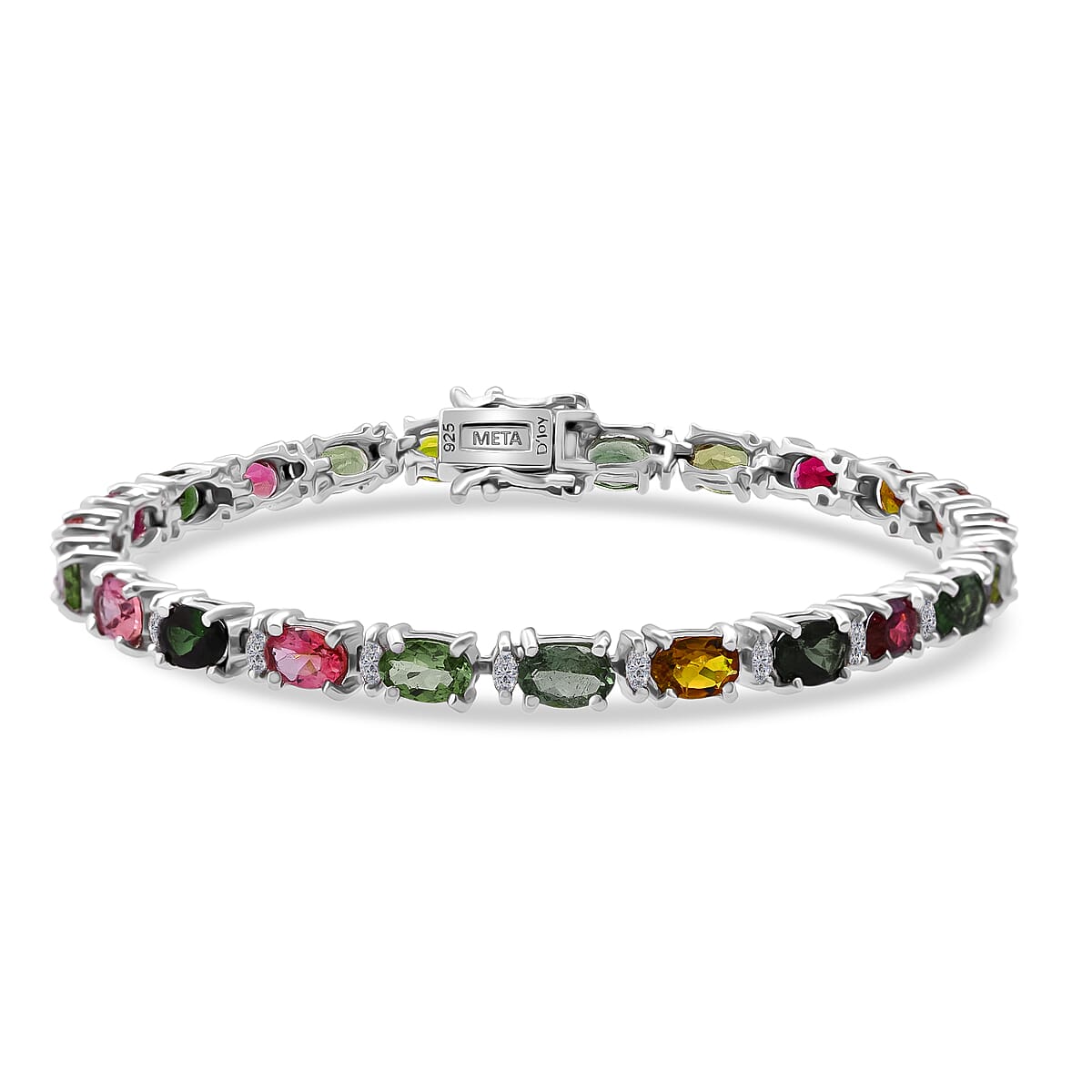 Brighten up your wrist with this D’Joy multi-tourmaline and moissanite bracelet in 925 sterling silver. This elegant gemstone bracelet for women features dazzling multi-tourmaline and moissanite accents for vibrant sparkle. Perfect for dressing up any outfit or adding a refined touch to special occasions.