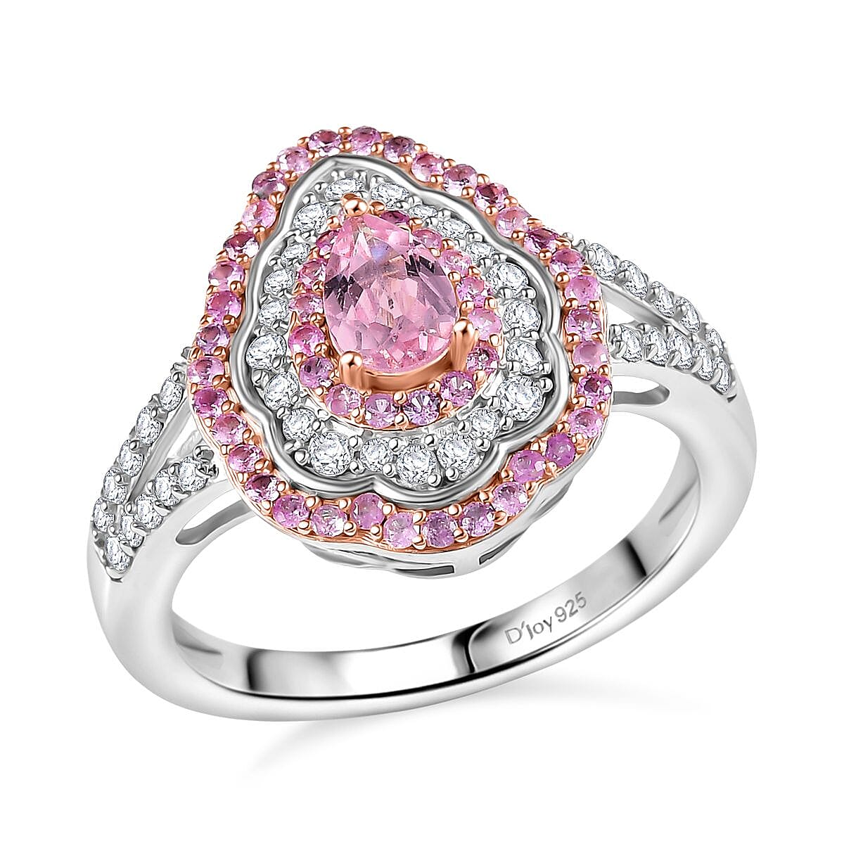 Elevate your look with this D’Joy pink spinel and multigemstone ring in 925 sterling silver. This elegant sterling silver ring features a spinel centerpiece surrounded by multigemstone accents. The combination of rose gold and rhodium finishes adds a luxurious, modern touch.