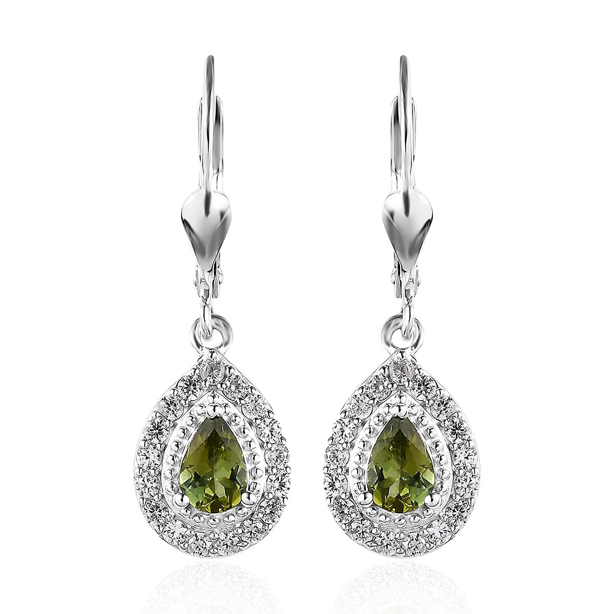 D'Joy Premium Natural Calabar Green Tourmaline and White Zircon Lever Back Earrings in Platinum Over Sterling Silver 1.50 ctw