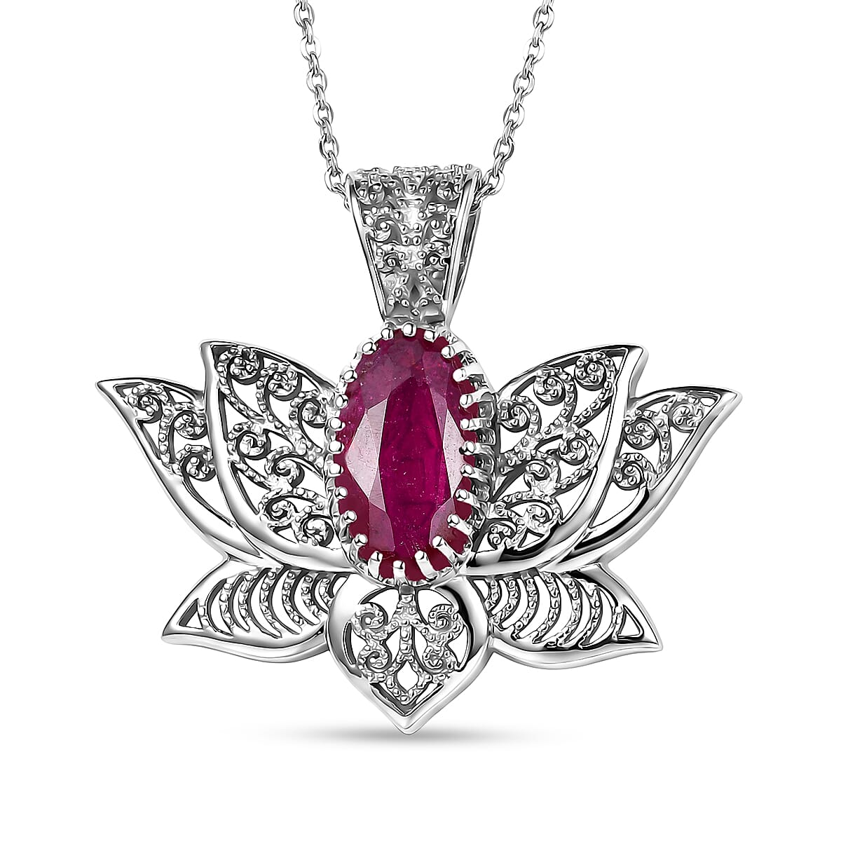 D'Joy Premium Niassa Ruby (FF) 3.20 ctw Pendant Necklace in Rhodium Over Sterling Silver 20 Inches