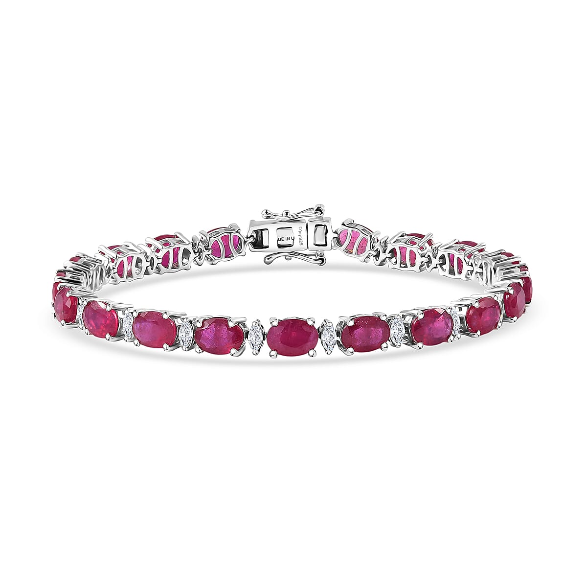 D'Joy Premium Niassa Ruby (FF) and Moissanite 23.15 ctw Red Reign Line Bracelet in Rhodium Over Sterling Silver (7.25 In)
