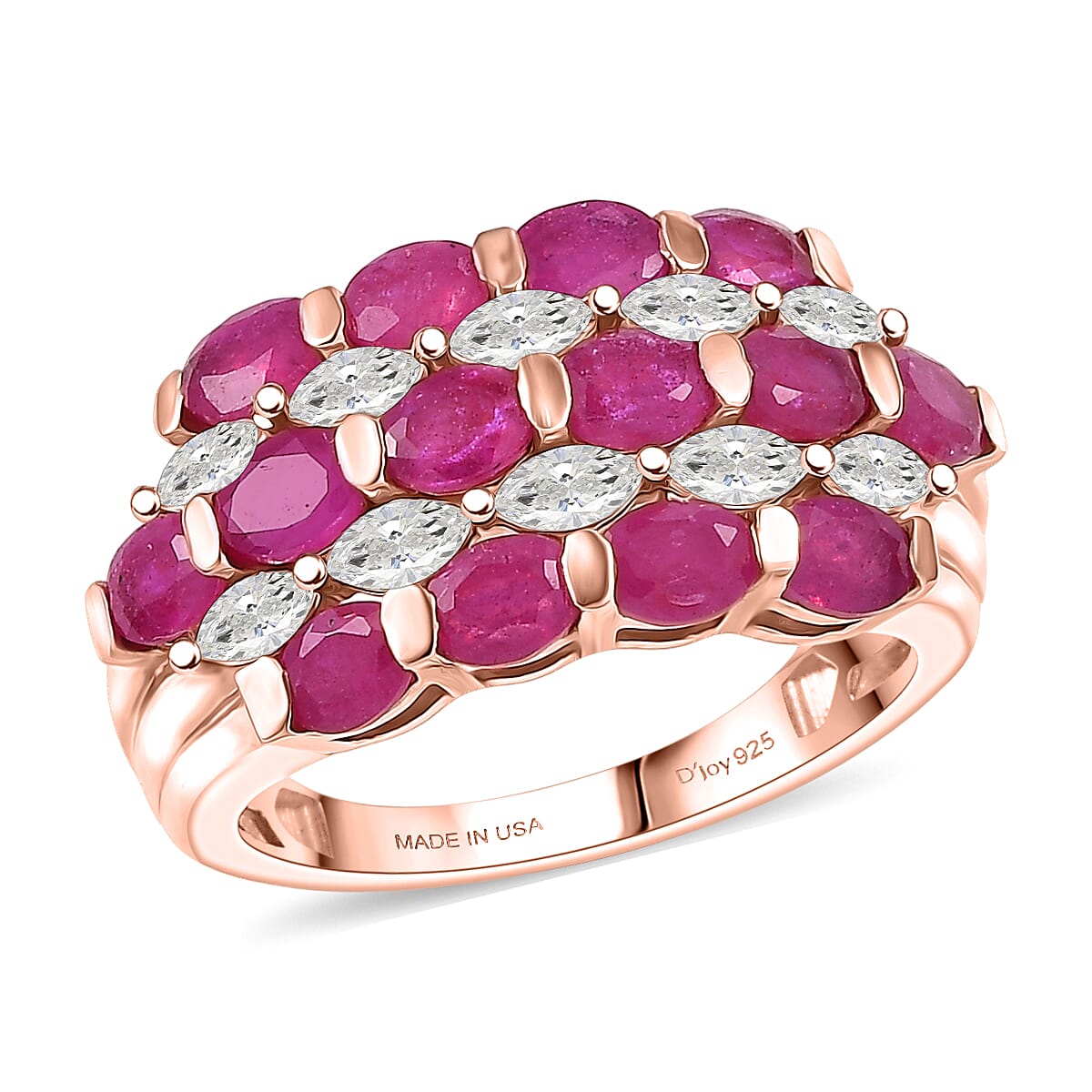 D'Joy Premium Niassa Ruby (FF) and Moissanite 4.60 ctw Bloom Symphony Ring in 18K Vermeil Rose Gold Over Sterling Silver (Size 8.0)