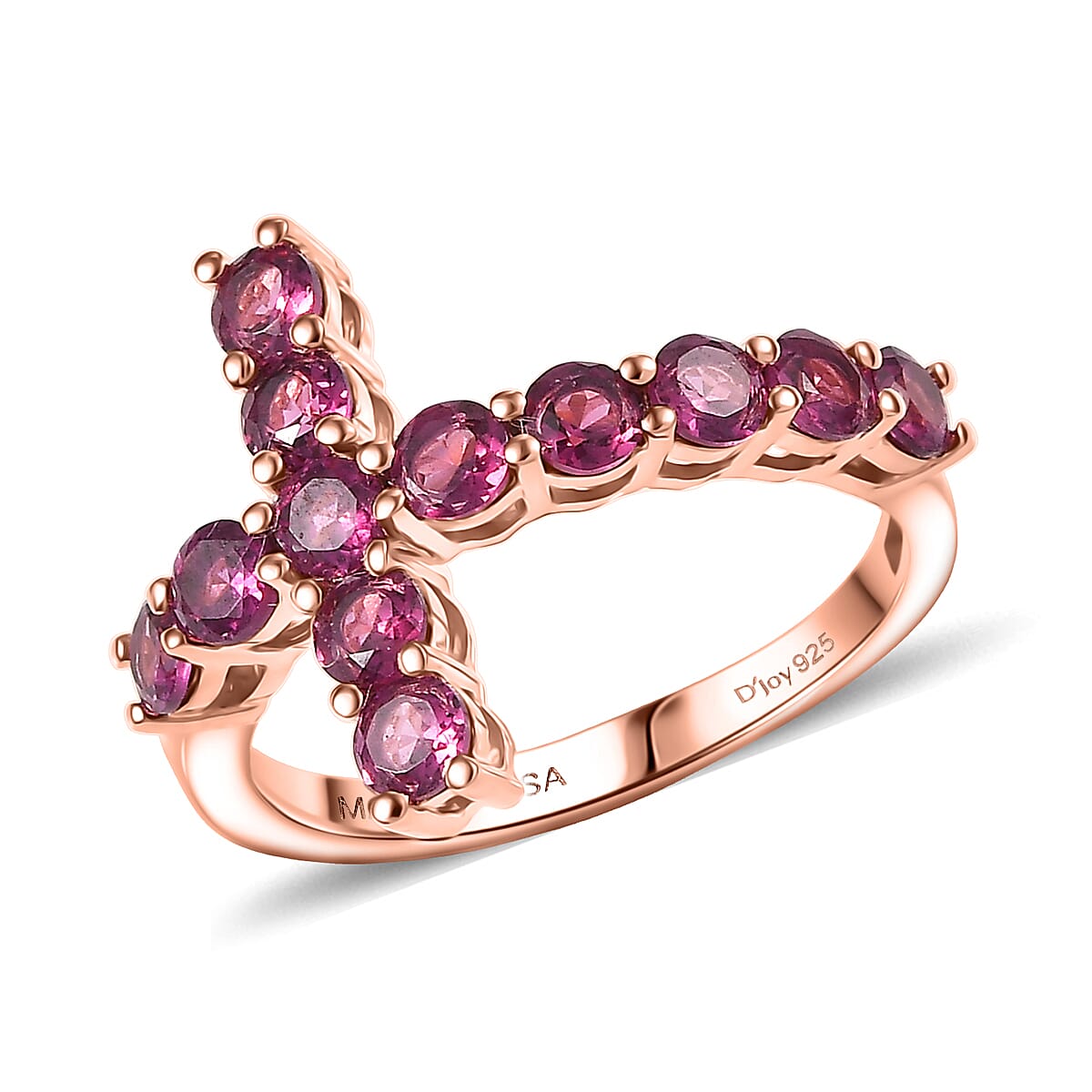 D'Joy Premium Orissa Rhodolite Garnet 2.20 ctw Cross Ring in 18K Vermeil Rose Gold Over Sterling Silver (Size 10.0)