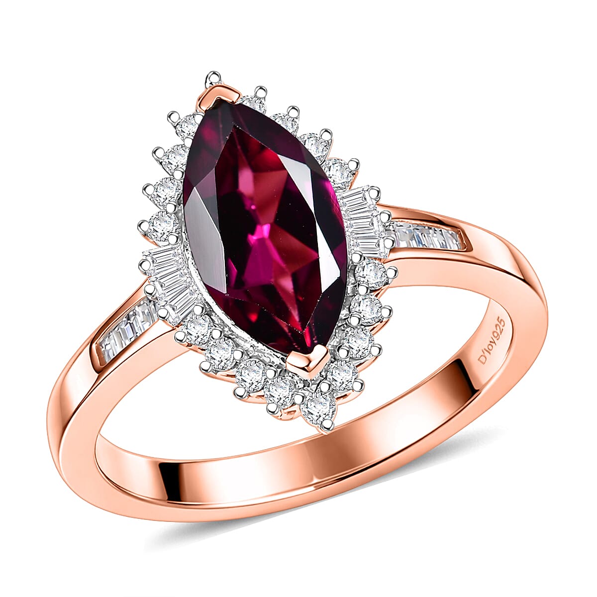 D'Joy Premium Orissa Rhodolite Garnet and Diamond 2.30 ctw Evening Glow Marquise Ring in 18K Vermeil Rose Gold Over Sterling Silver (Size 10.0)
