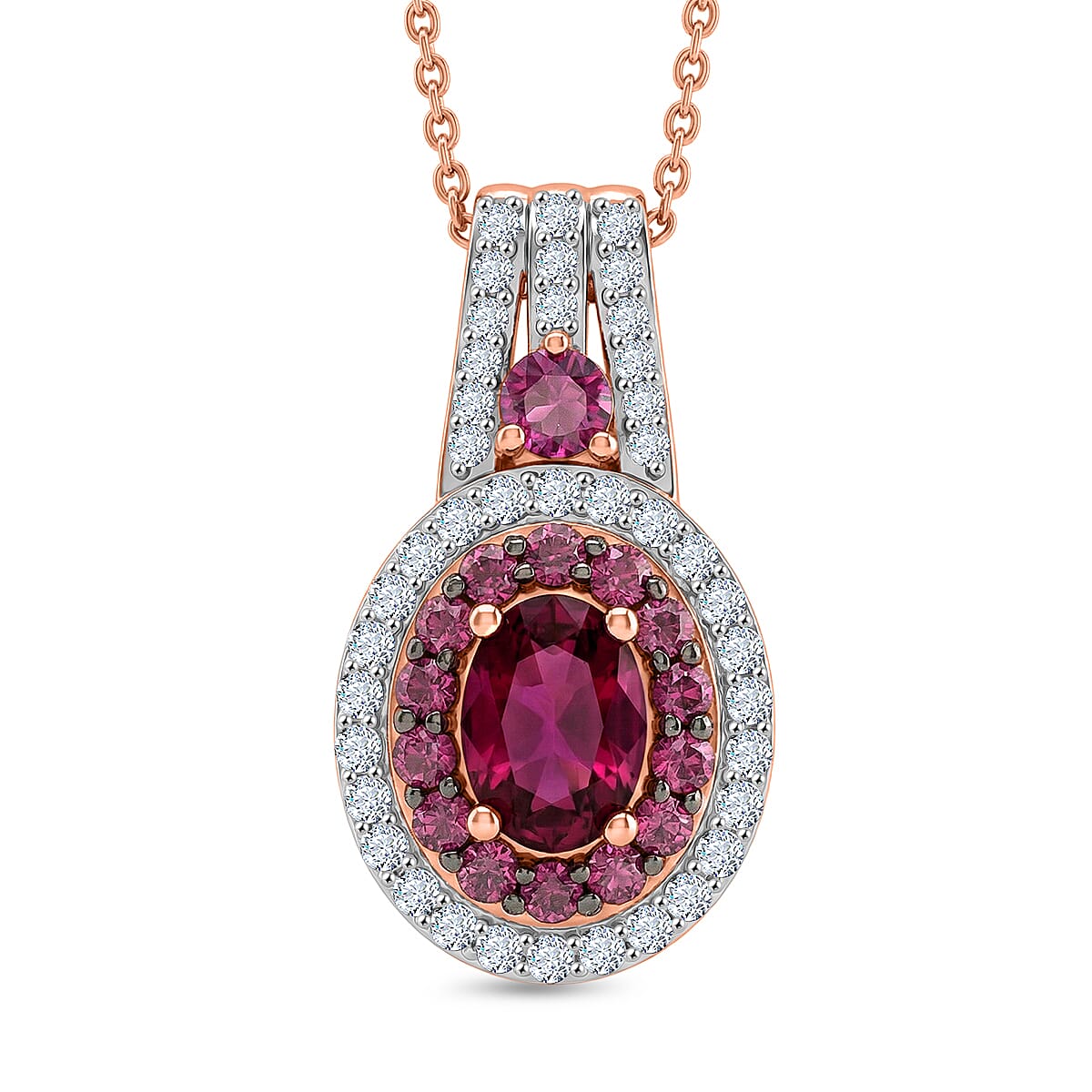 D'Joy Premium Orissa Rhodolite Garnet and Moissanite 2.00 ctw Wine Fire Halo Pendant Necklace in 18K Vermeil Rose Gold Over Sterling Silver 20 Inches