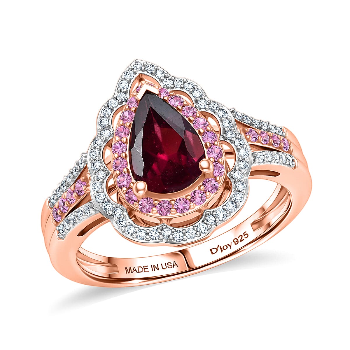 D'Joy Premium Orissa Rhodolite Garnet and Multi Gemstone 2.10 ctw Wine & Blush Radiance Ring in 18K Vermeil Rose Gold Over Sterling Silver (Size 10.0)