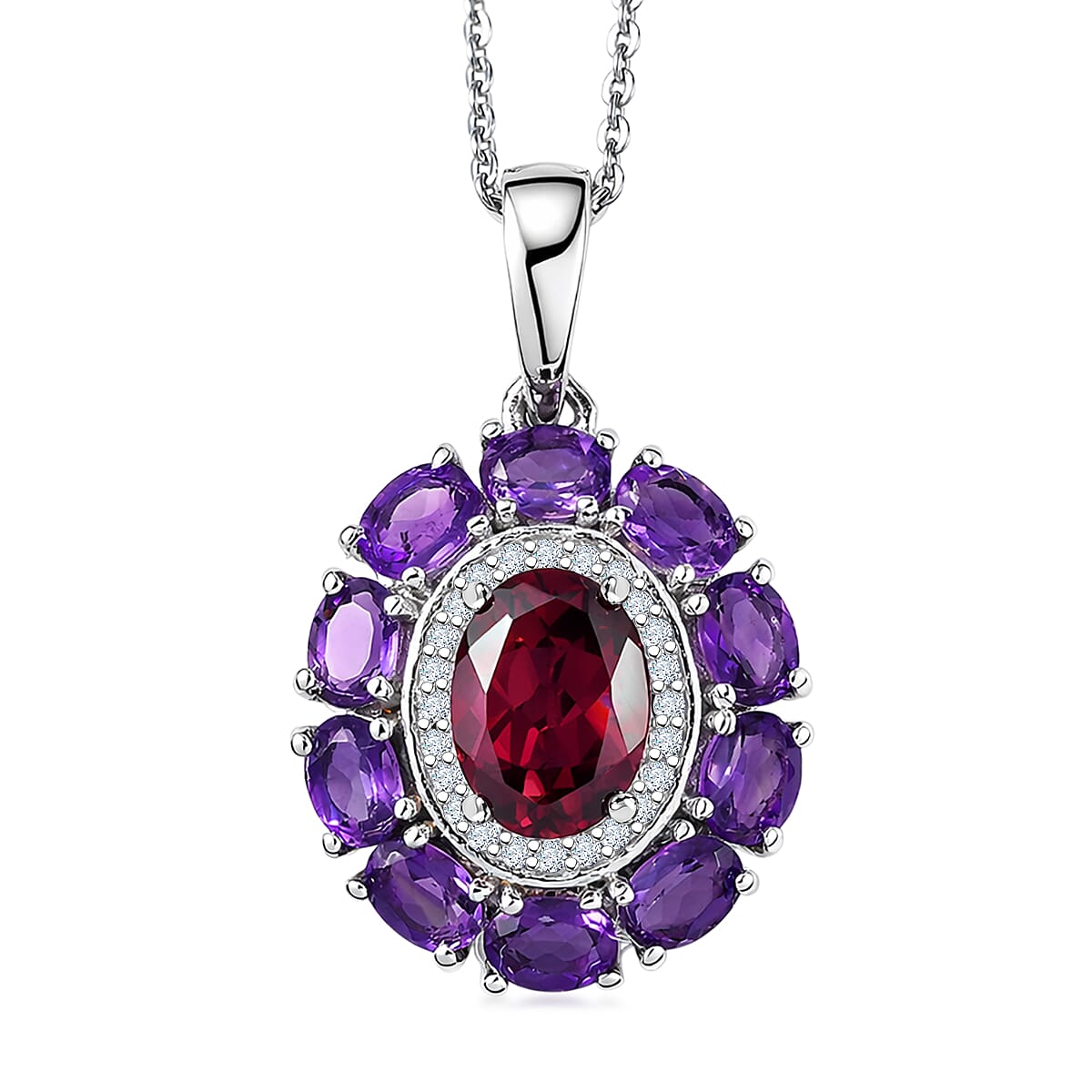 D'Joy Premium Orissa Rhodolite Garnet and Multi Gemstone 3.25 ctw Velvet Blossom Pendant Necklace in Rhodium Over Sterling Silver 20 Inches