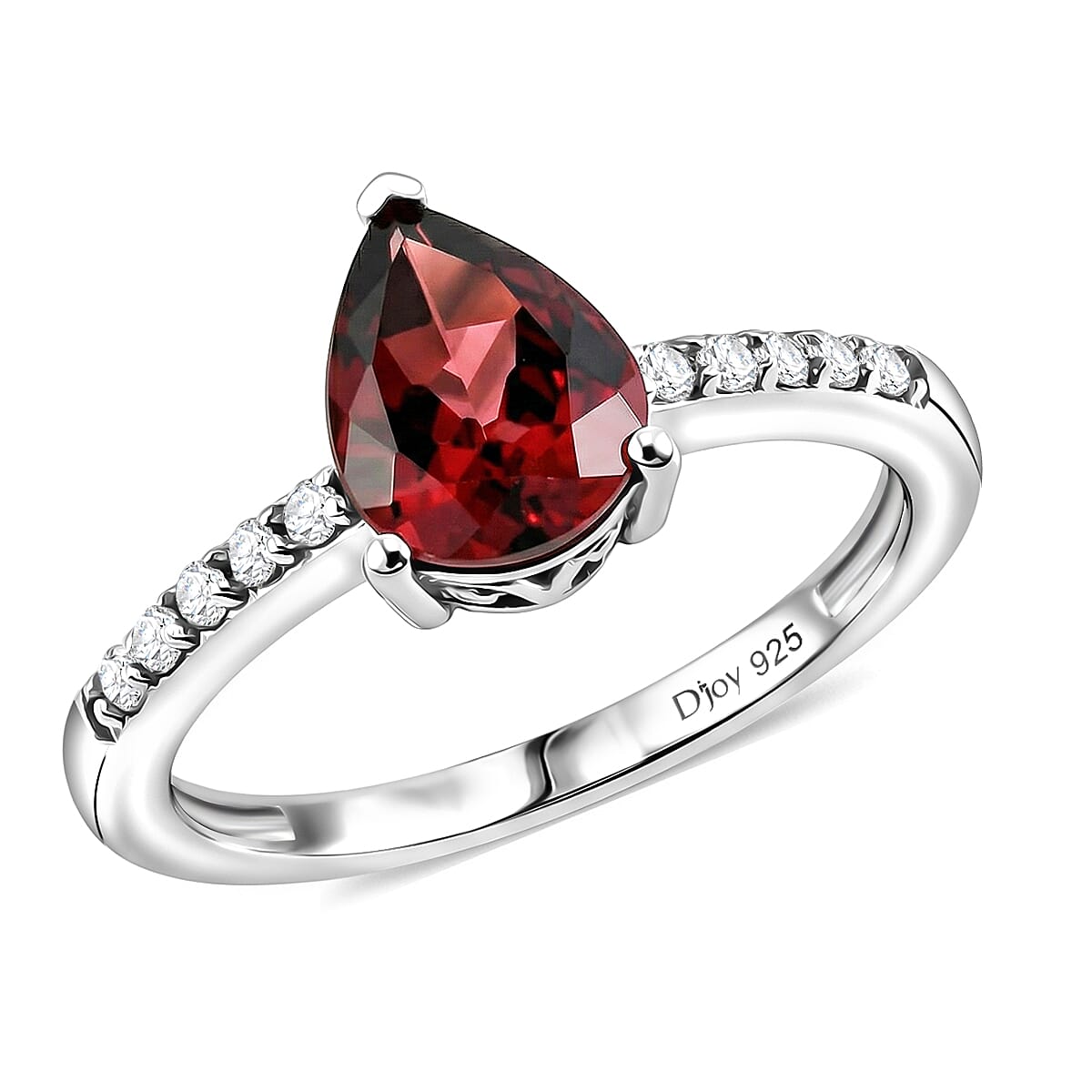 D'Joy Premium Orissa Rhodolite Garnet and White Zircon 2.10 ctw Ring in Rhodium Over Sterling Silver (Size 7.0)