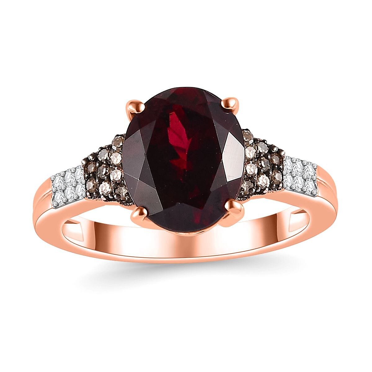 D'Joy Premium Orissa Rhodolite Garnet, Natural Champagne and White Diamond Ring in 18K Vermeil Rose Gold Over Sterling Silver (Size 6.0) 3.40 ctw