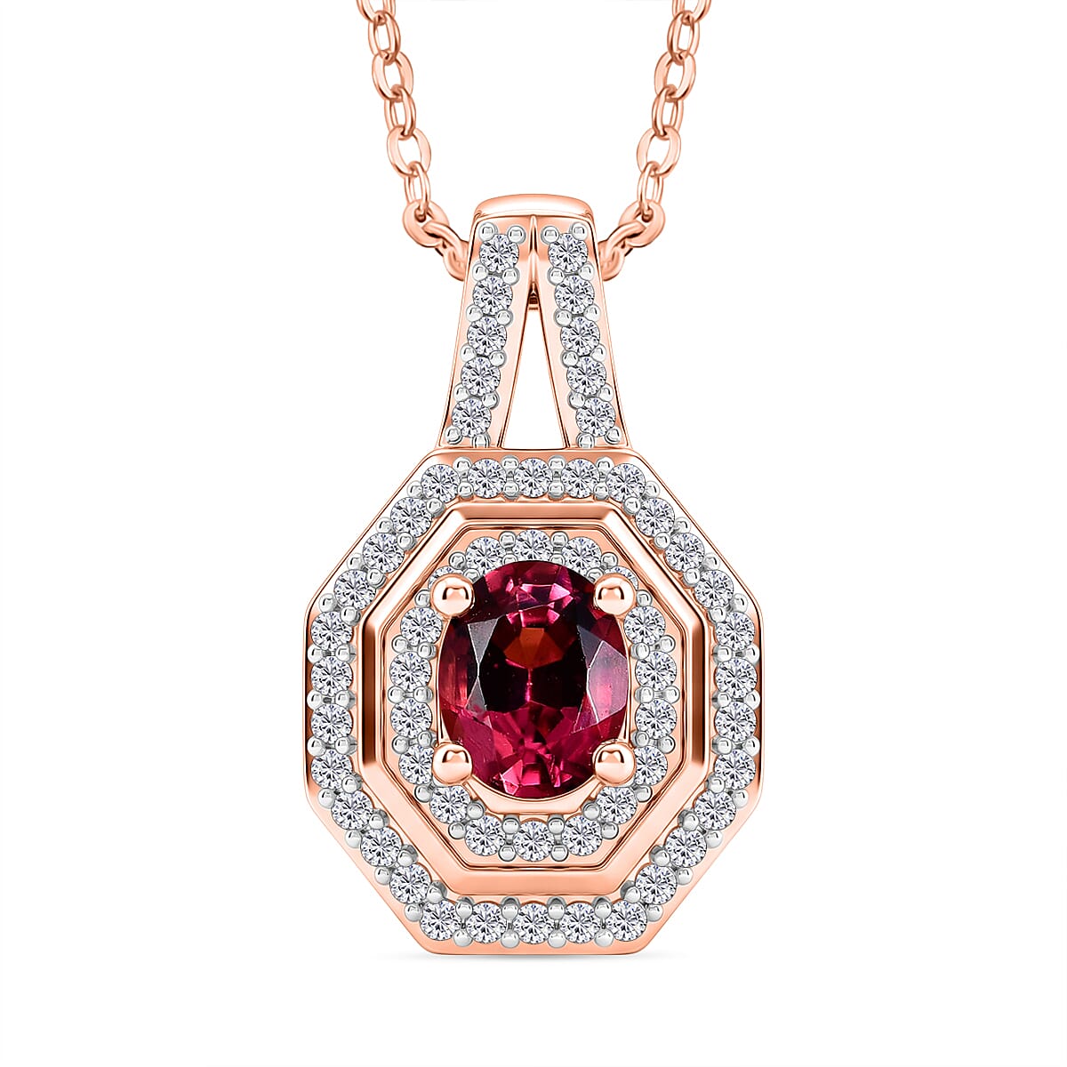 D'Joy Premium Ouro Fino Rubellite and Moissanite 0.65 ctw Passion Halo Pendant Necklace in 18K Vermeil Rose Gold Over Sterling Silver 20 Inches