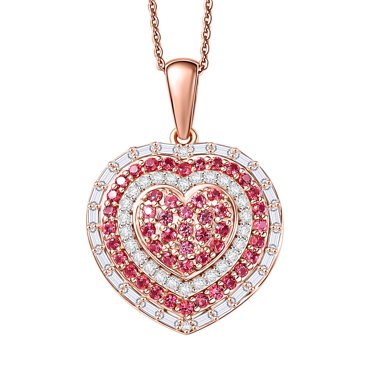 D'Joy Premium Padparadscha Sapphire and Moissanite 1.50 ctw Pendant Necklace in 18K Vermeil Rose Gold Over Sterling Silver 20 Inches