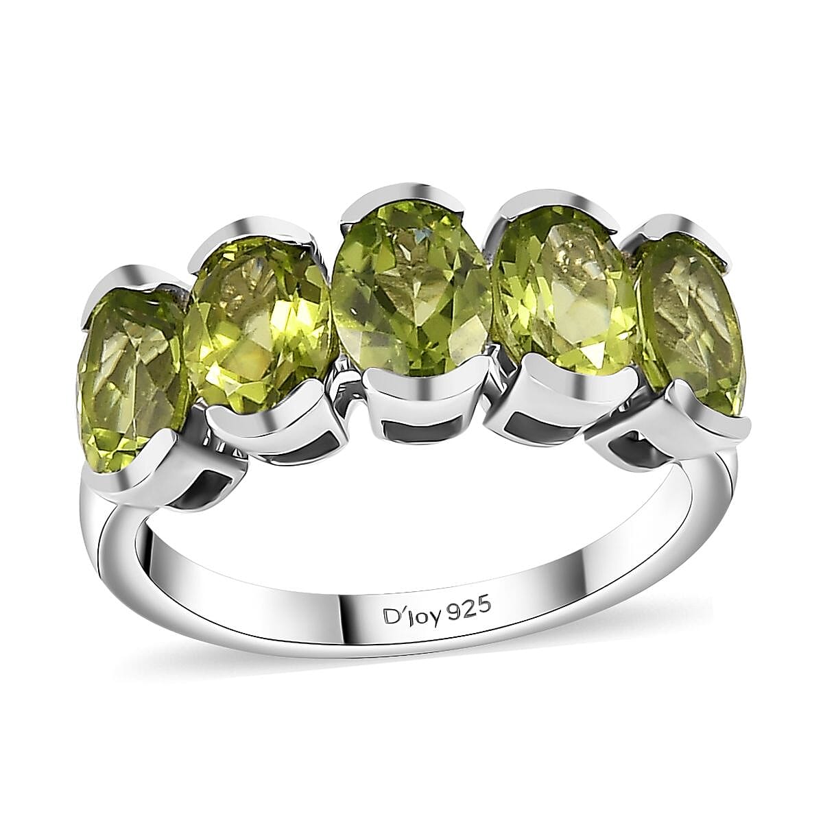 D'Joy Premium Peridot 5 Stone Ring in Platinum Over Sterling Silver (Size 6.0) 3.90 ctw
