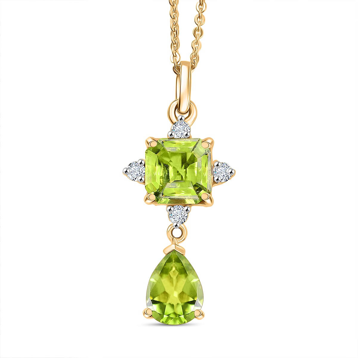 D'Joy Premium Peridot and White Zircon 2.85 ctw Pendant Necklace 20 Inches in Sterling Silver