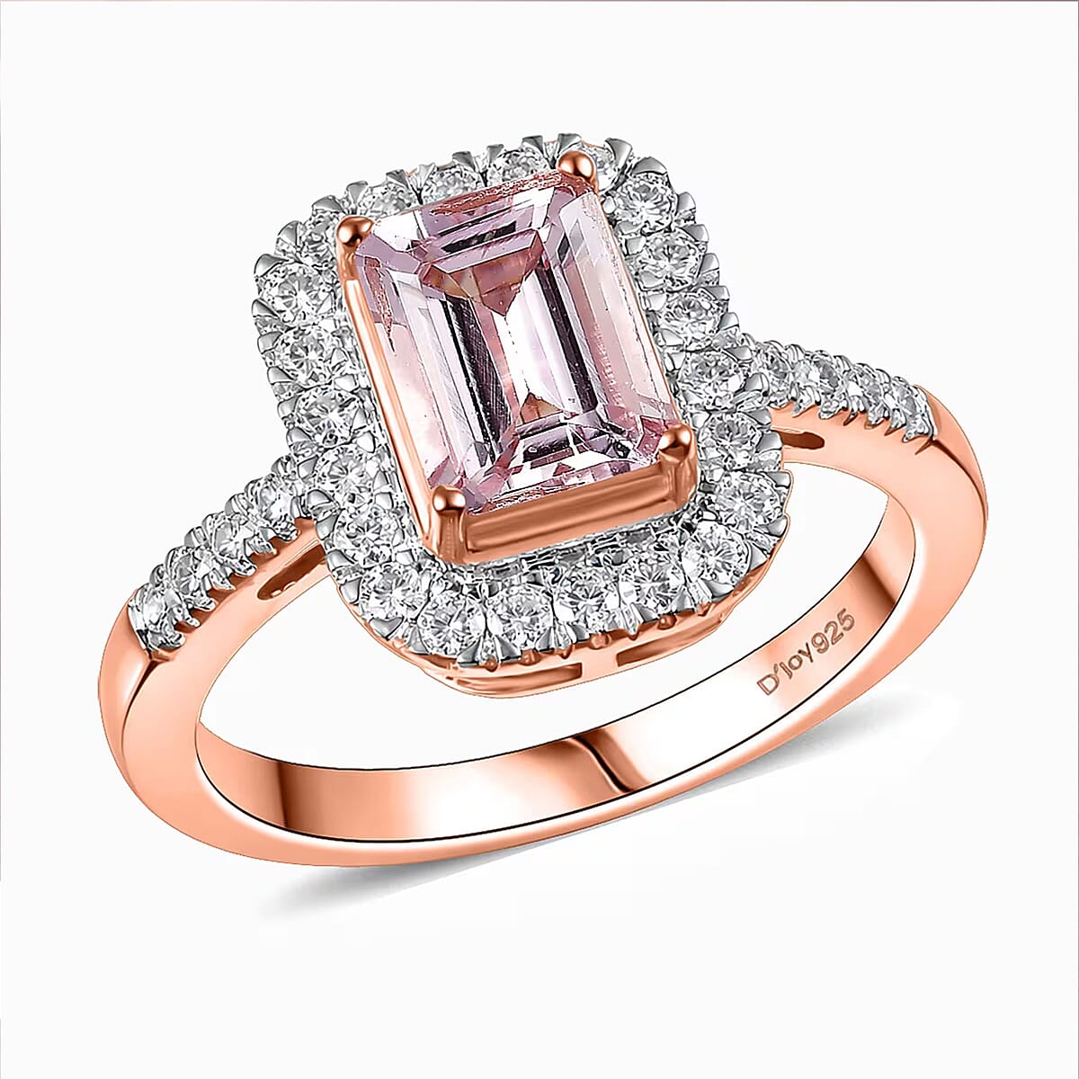 D'Joy Premium Pink Morganite and Moissanite 2.00 ctw Blush Halo Ring in 18K Vermeil Rose Gold Over Sterling Silver (Size 7.0)