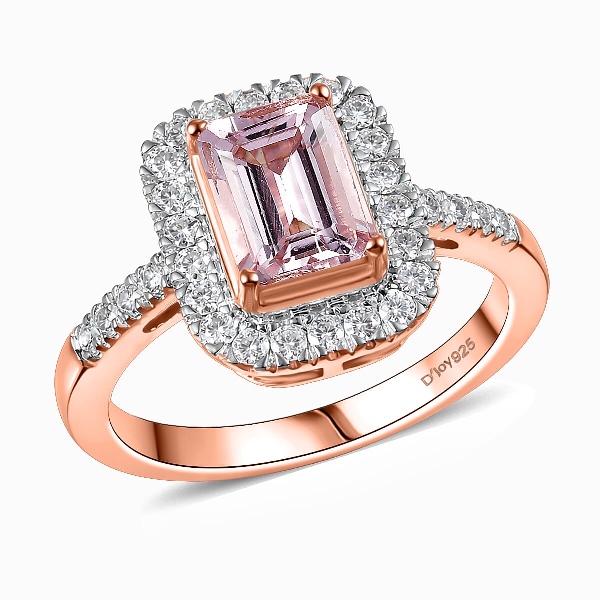 D'Joy Premium Pink Morganite and Moissanite 2.00 ctw Blush Halo Ring in 18K Vermeil Rose Gold Over Sterling Silver (Size 9.0)
