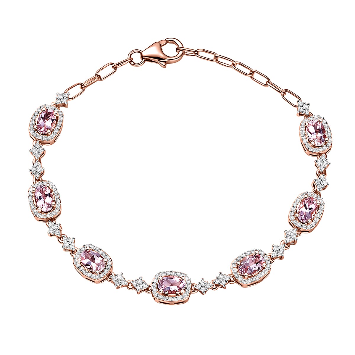 D'Joy Premium Pink Morganite and Moissanite 4.50 ctw Promise Petal Bracelet in 18K Vermeil Rose Gold Over Sterling Silver (7.25 In)