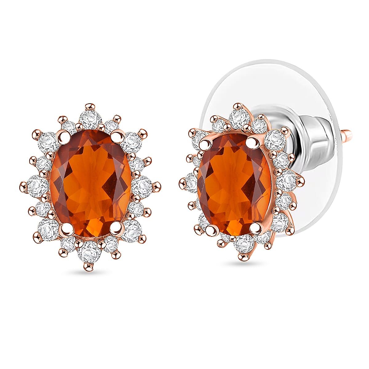 D'Joy Premium Red Citrine and White Zircon 2.34 ctw Earrings in 18K Vermeil Rose Gold Over Sterling Silver