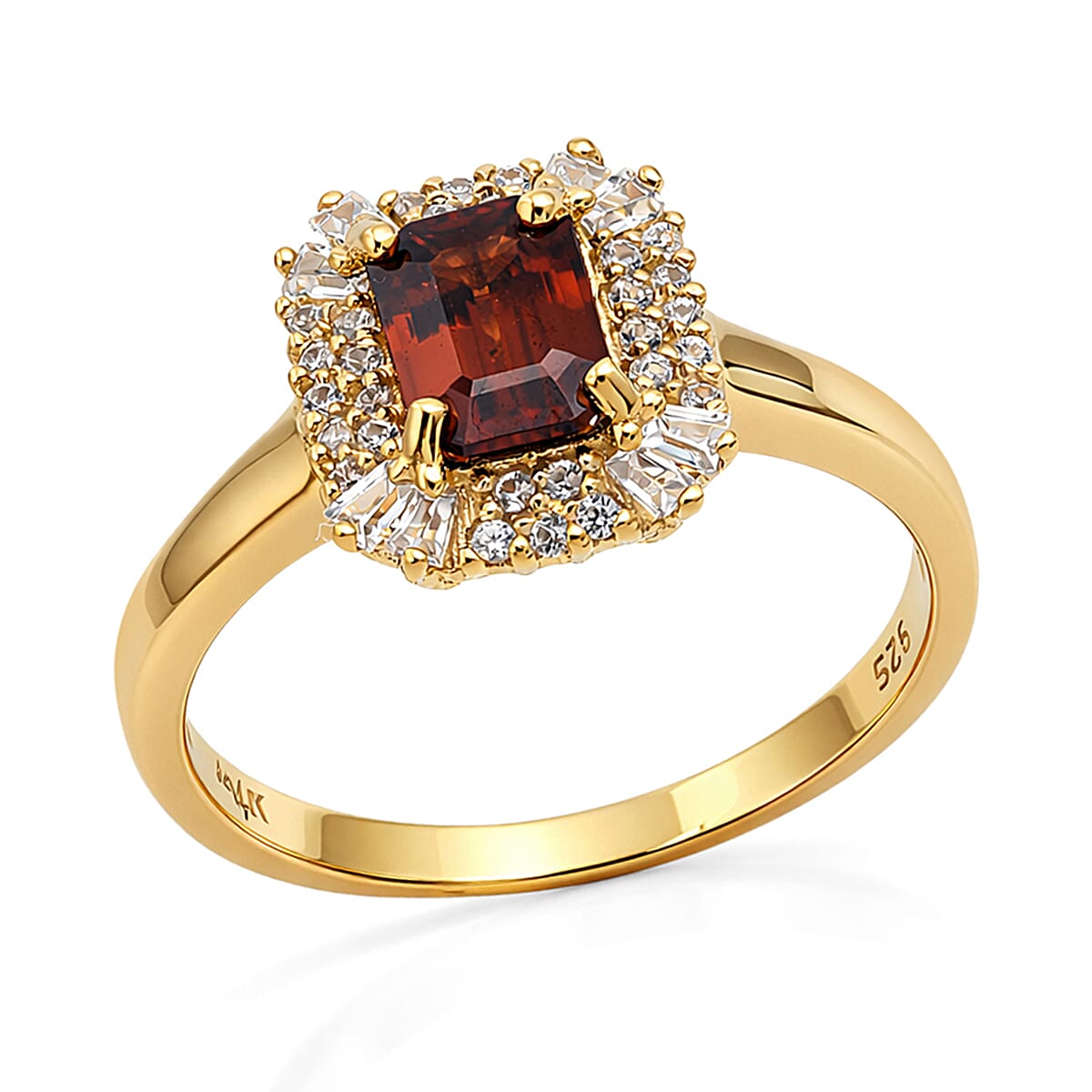 D'Joy Premium Red Zircon and White Zircon 2.10 ctw Imperial Seal Ring in 18K Vermeil Yellow Gold Over Sterling Silver (Size 8.0)
