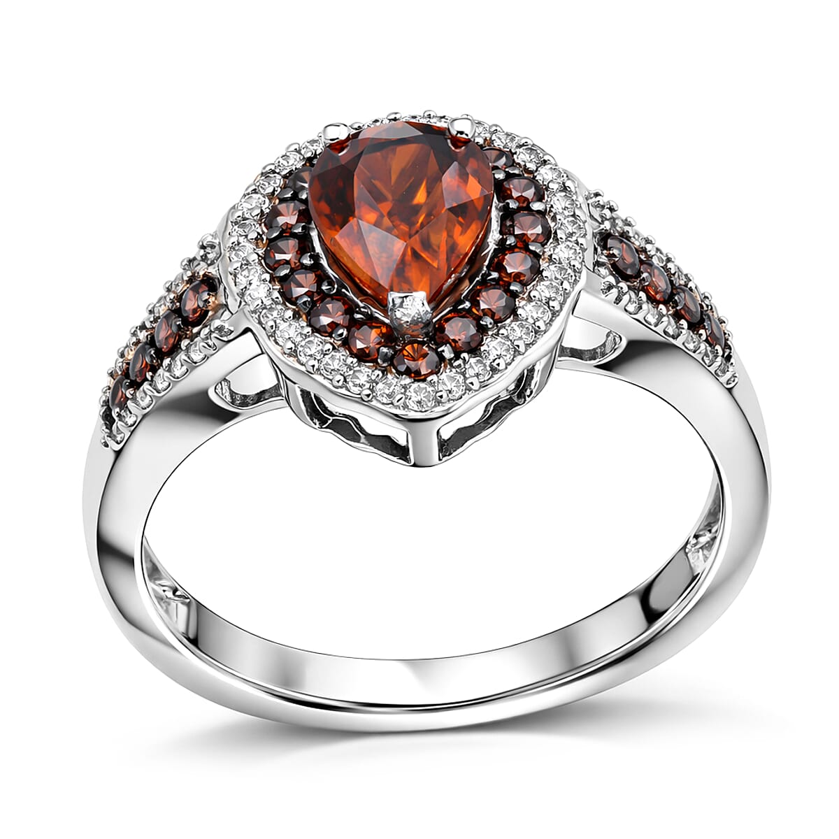 D'Joy Premium Red Zircon, Chocolate and White Zircon 3.40 ctw Flame Crest Ring in Rhodium Over Sterling Silver (Size 10.0) (Del. in 7-10 Days)