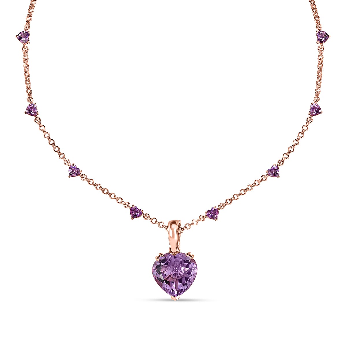 D'Joy Premium Rose De France Amethyst 23.10 ctw Fancy Necklace in 18K Vermeil Rose Gold Over Sterling Silver 18-20 Inches