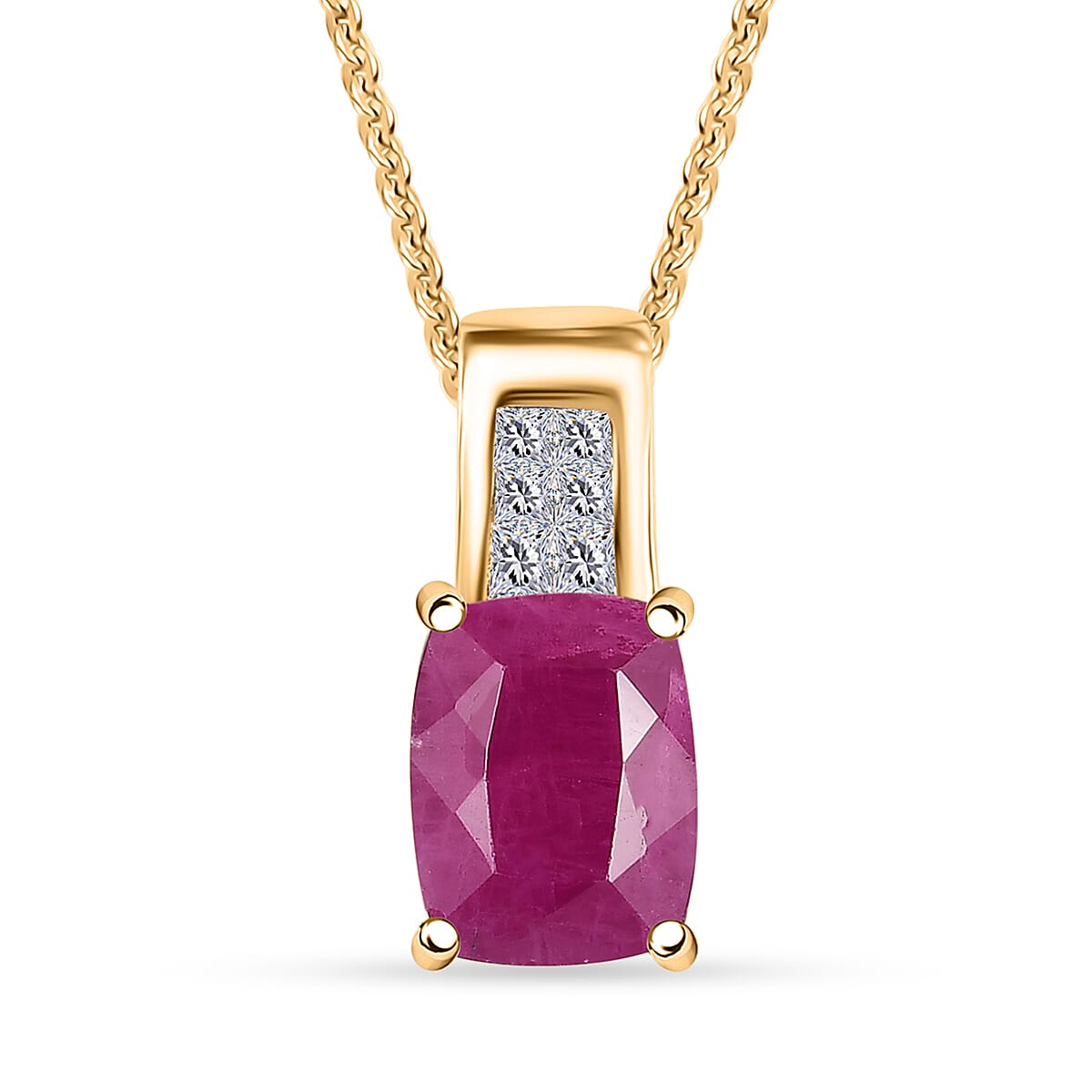 D'Joy Premium Royal Ruby and Diamond 2.10 ctw Art Deco Pendant Necklace in 18K Vermeil Yellow Gold Over Sterling Silver 20 Inches