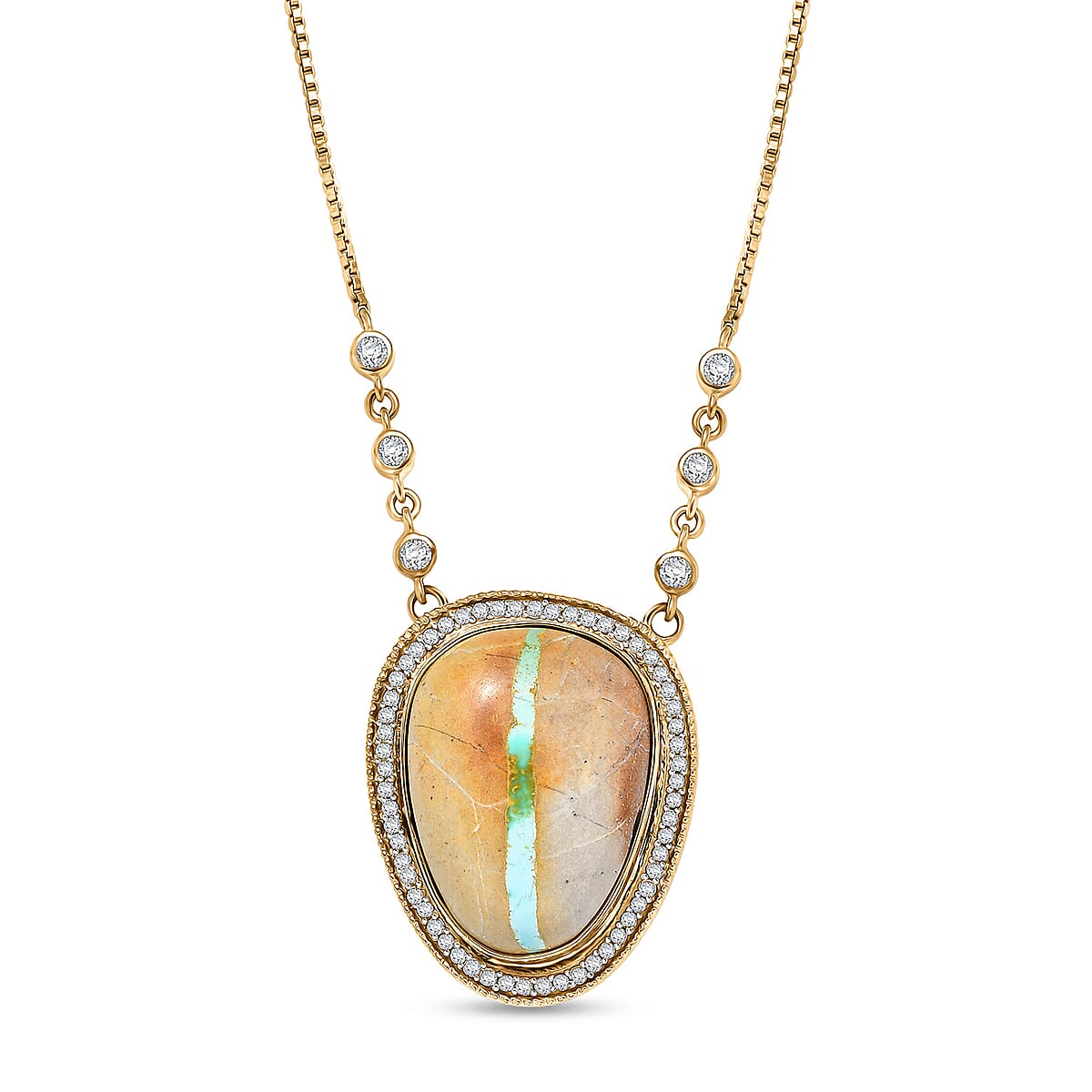 D'Joy Premium Royston Ribbon Turquoise and White Zircon 17.50 ctw Neckalce in 18K Vermeil Yellow Gold Over Sterling Silver 18- 20 Inches