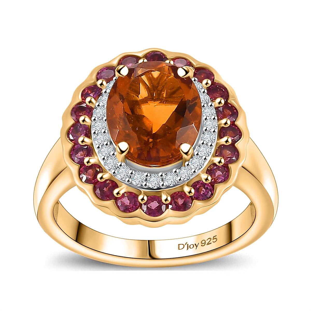 D'Joy Premium Santa Ana Madeira Citrine and Multi Gemstone 3.80 ctw Radiant Flame Bloom Ring in 18K Vermeil Yellow Gold Over Sterling Silver (Size 7.0)