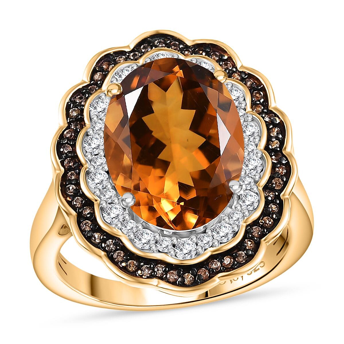 D'Joy Premium Santa Ana Madeira Citrine, White and Champagne Zircon Floral Ring in 18K Vermeil YG Over Sterling Silver (Size 6.0) 6.35 ctw
