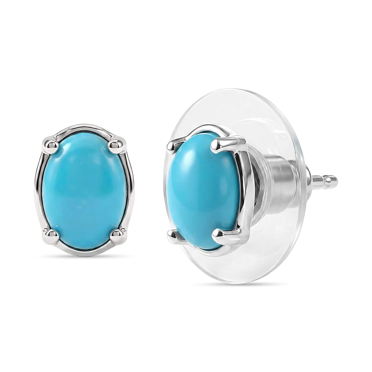 D'Joy Premium Sleeping Beauty Turquoise 1.50 ctw Stud Earrings in Rhodium Over Sterling Silver