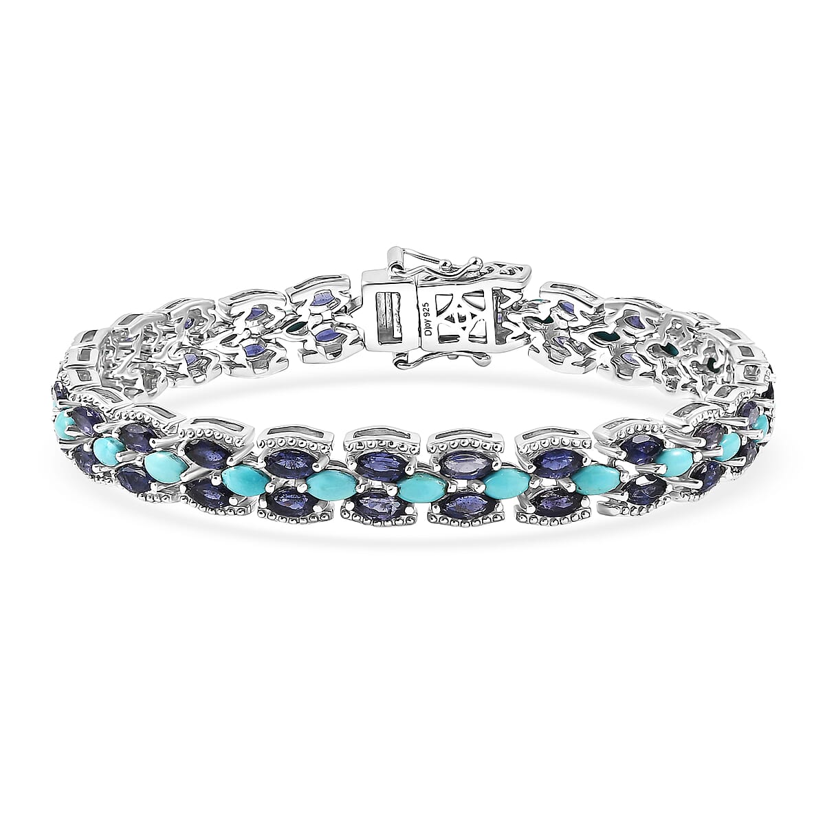 D'Joy Premium Sleeping Beauty Turquoise and Catalina Iolite 9.25 ctw Blue Majesty Bracelet in Rhodium Over Sterling Silve (7.25 In)