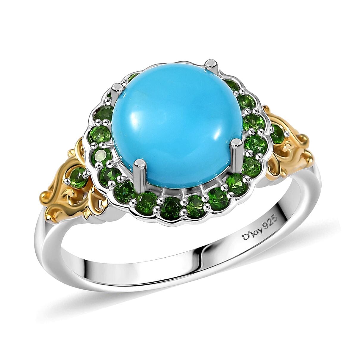 D'Joy Premium Sleeping Beauty Turquoise and Chrome Diopside 2.80 ctw Ring in 18K Vermeil YG and Rhodium Over Sterling Silver (Size 8.0)