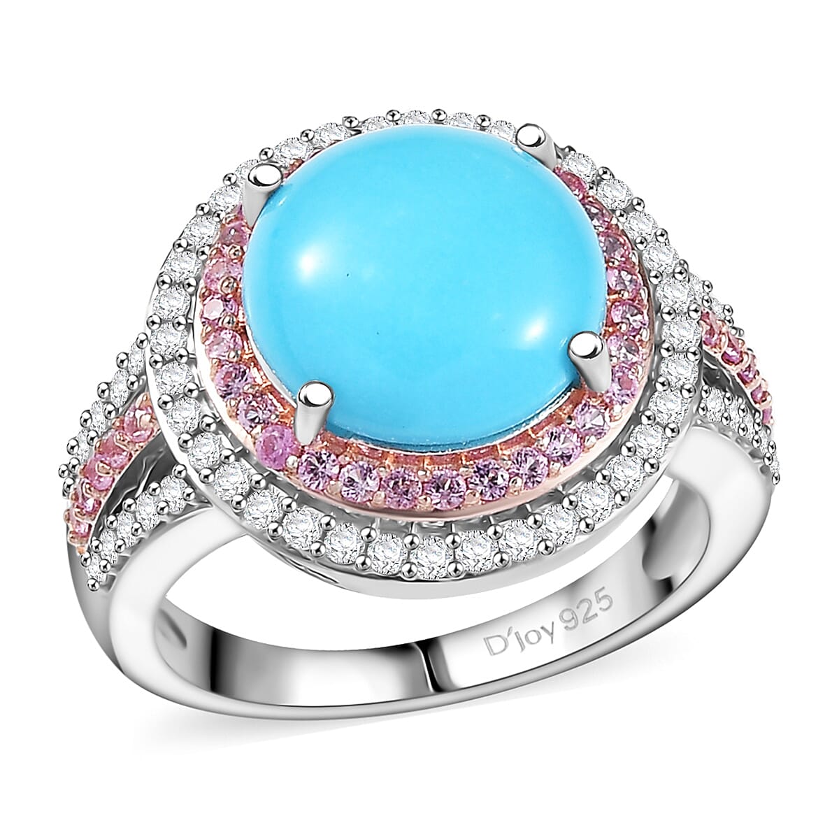 D'Joy Premium Sleeping Beauty Turquoise and Multi Gemstone 5.30 ctw Celestial Halo Ring in Rhodium Over Sterling Silver (Size 8.0) (Del. in 10-12 Days)