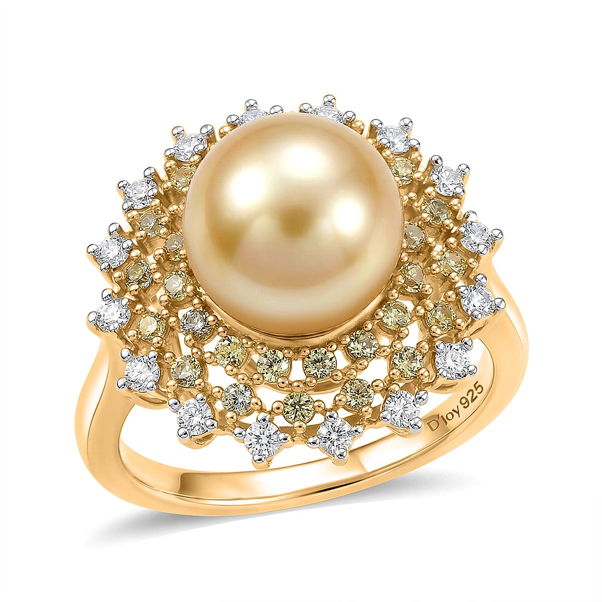 D'Joy Premium South Sea Golden Cultured Pearl and Multi Gemstone 1.00 ctw Golden Sunflare Ring in 18K Vermeil Yellow Gold Over Sterling Silver (Size 9.0)