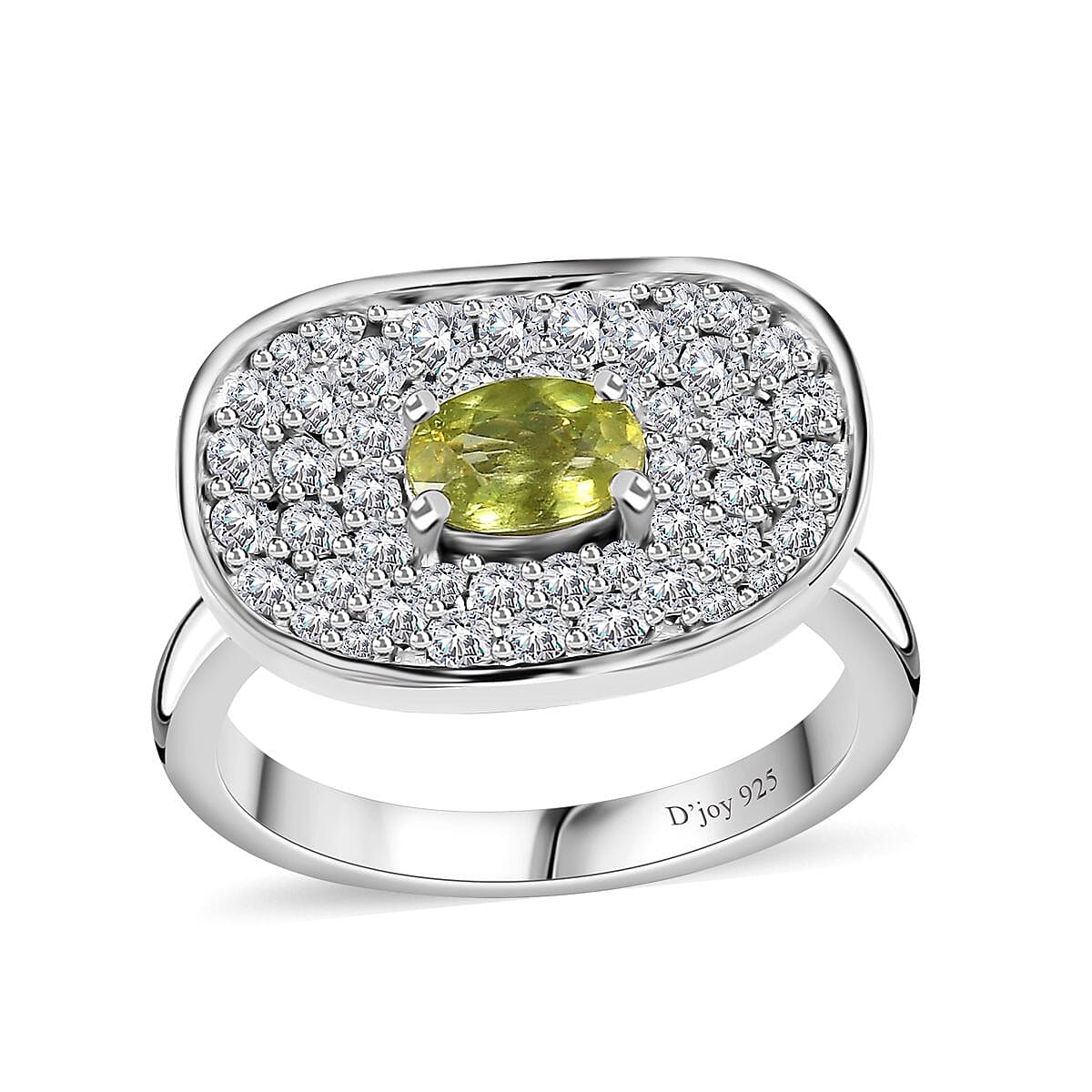 D'Joy Premium Sphene and Moissanite Ring in Rhodium Over Sterling Silver (Size 9.0) 1.25 ctw