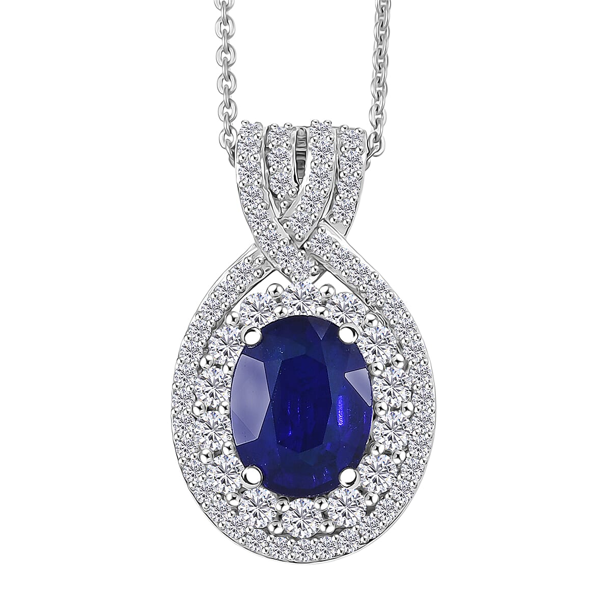 D'Joy Premium Tanzanian Blue Spinel and White Zircon 3.70 ctw Pendant Necklace in Rhodium Over Sterling Silver 20 Inches