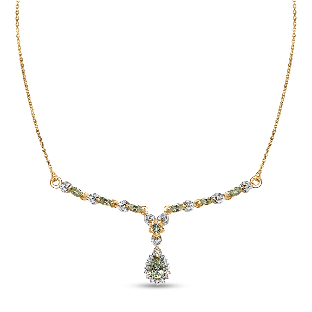 D'Joy Premium Tanzanian Mint Garnet and Moissanite 1.30 ctw Pear Drop Necklace in 18K Vermeil Yellow Gold Over Sterling Silver 18-20 Inches