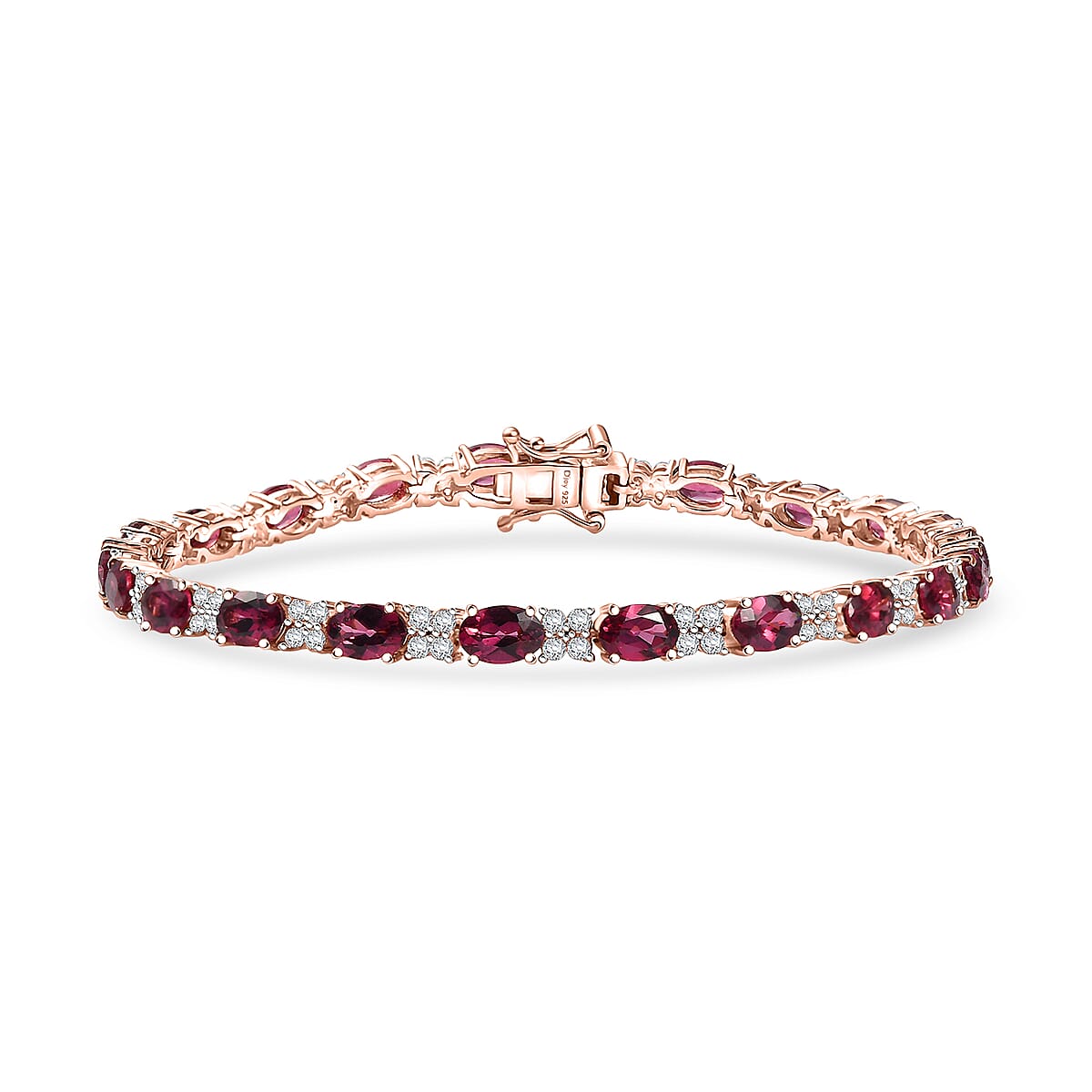 D'Joy Premium Tanzanian Wine Garnet and White Zircon 14.55 ctw Eternal Flame Bracelet in 18K Vermeil RG Over Sterling Silver (8.00 In)
