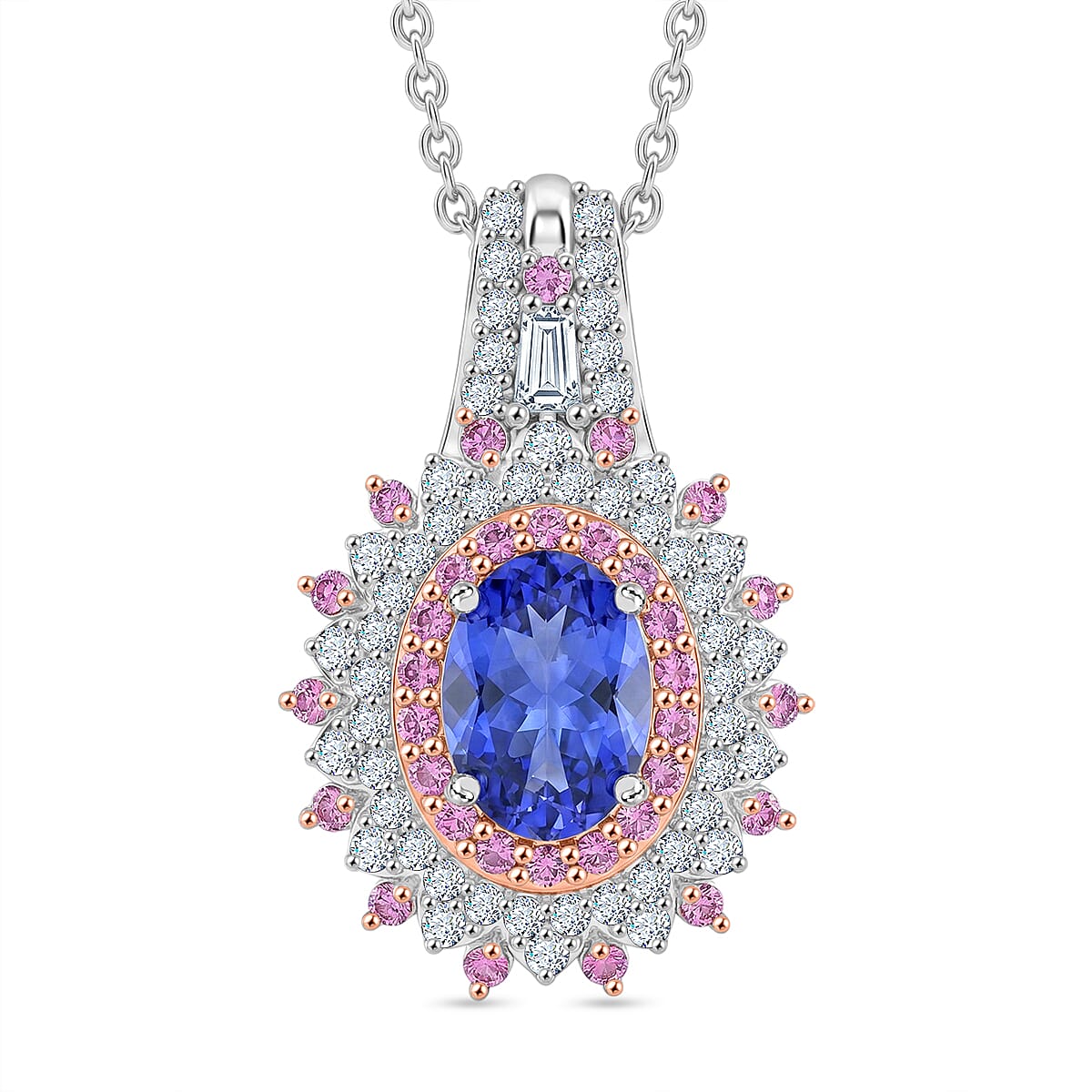 D'Joy Premium Tanzanite and Multi Gemstone 1.30 ctw Pendant Necklace in Rhodium Over Sterling Silver 20 Inches