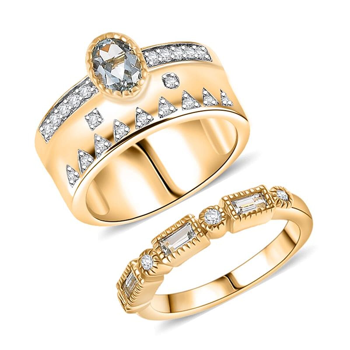 D'Joy Rachel Roy Loving Care Set of 2 Premium Sky Blue Topaz, White Zircon Ring in 18K Vermeil YG Over Sterling Silver (Size 6.0) 1.90 ctw