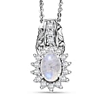 D'Joy Rainbow Moonstone and White Zircon 1.55 ctw Pendant Necklace in Rhodium Over Sterling Silver 20 Inches