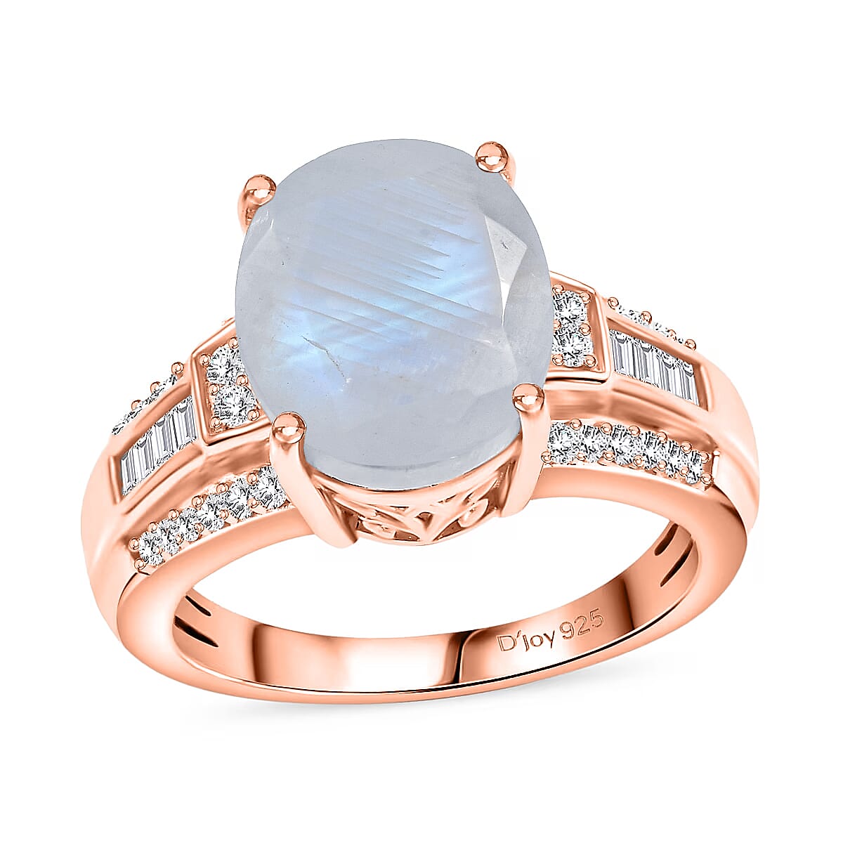 D'Joy Rainbow Moonstone and White Zircon 5.10 ctw Ring in 18K Vermeil Rose Gold Over Sterling Silver (Size 8.5)