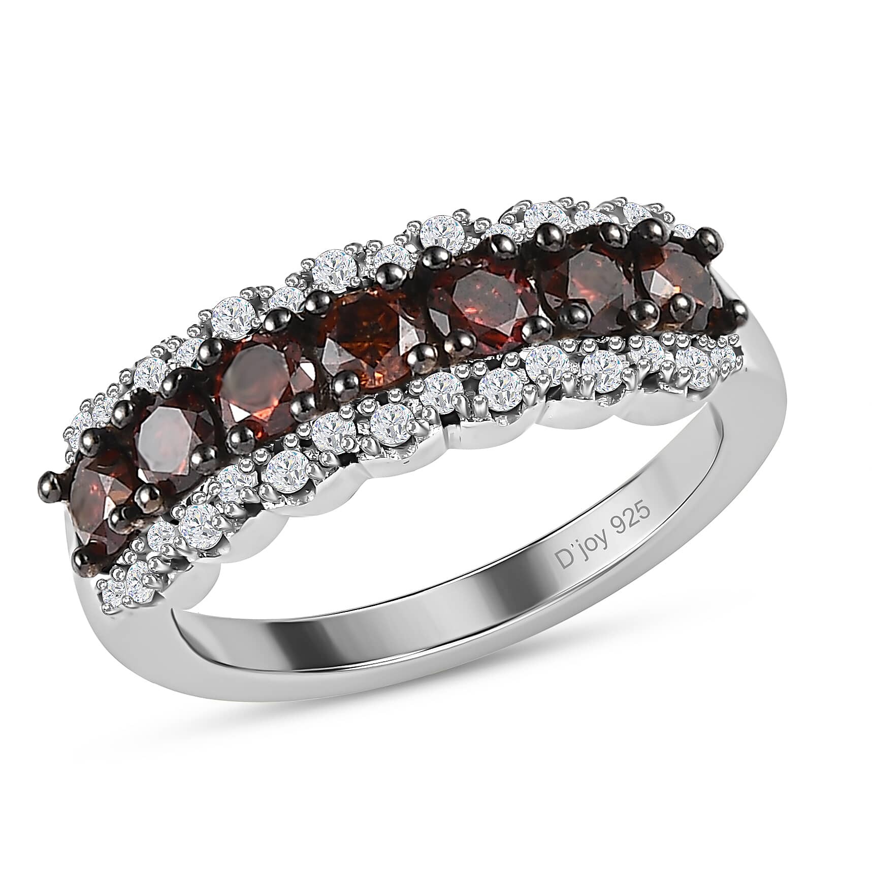 D'Joy Red and White Diamond 1.00 ctw Ring in Platinum Over Sterling Silver (Size 7.0)