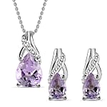 D'Joy Rose De France Amethyst 1.65 ctw Earrings and Pendant Necklace Jewelry Set, Sterling Silver and Stainless Steel Jewelry Set, Set of Amethyst Earrings and Amethyst Pendant Necklace